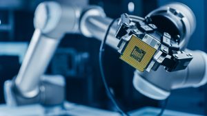 Modern,High,Tech,Authentic,Robot,Arm,Holding,Contemporary,Super,Computer